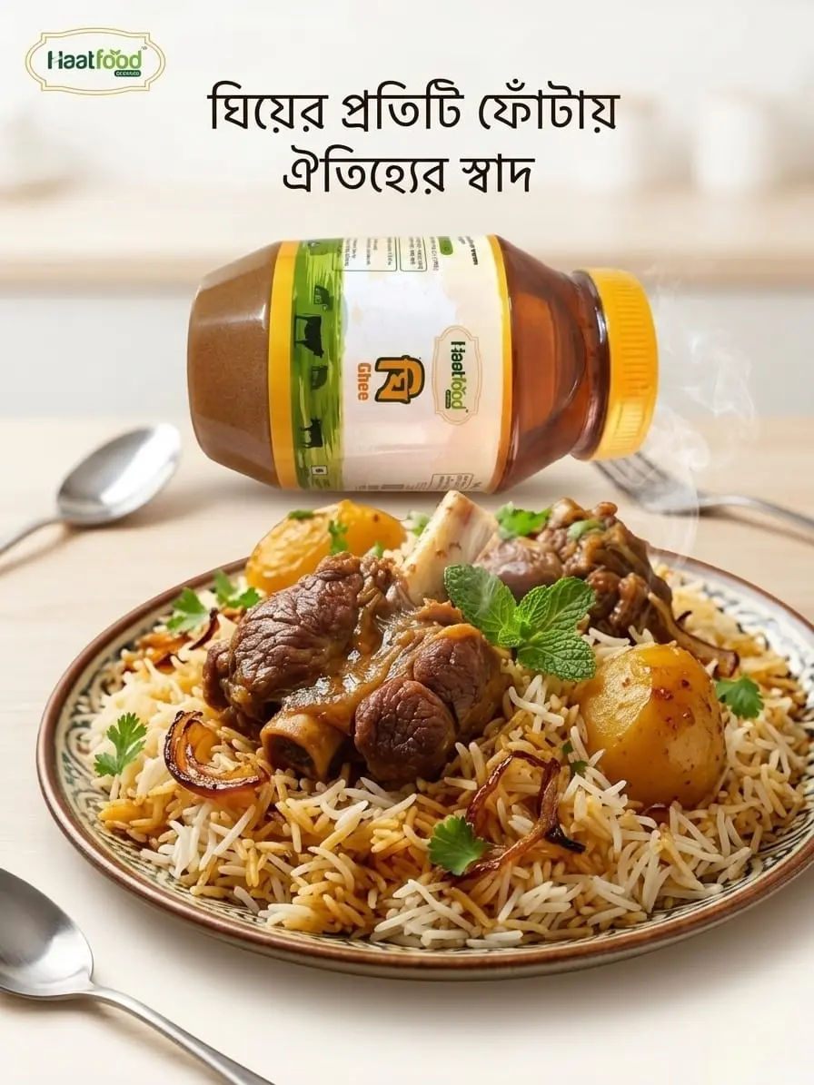 এখনই অর্ডার করুন — আপনার পরিবারের প্রতিদিনের খাবারে যোগ করুন আসল গাওয়া ঘি’র জাদু।